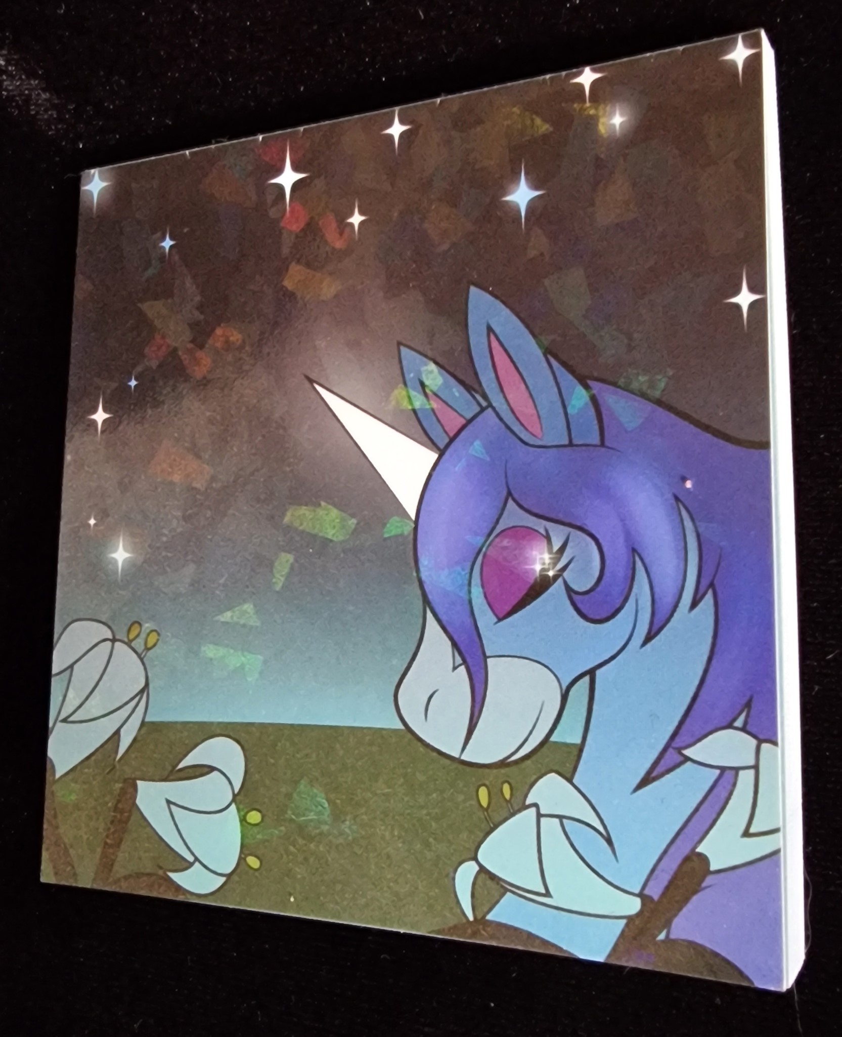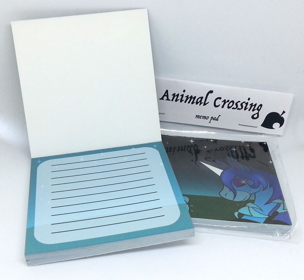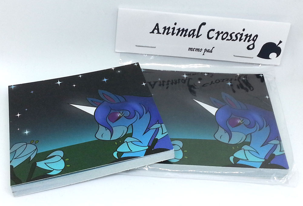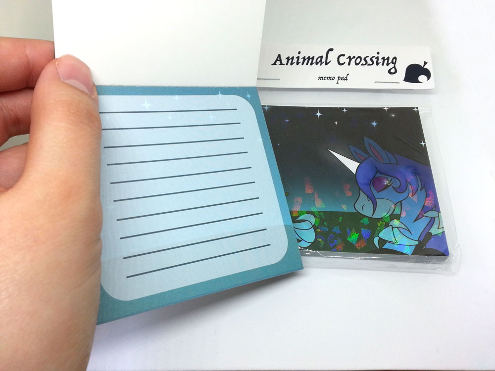 A tiny 8cmx8cm memopad with prism coating with Julian on the cover, the insides being inspired by the letters that you can write to villagers.