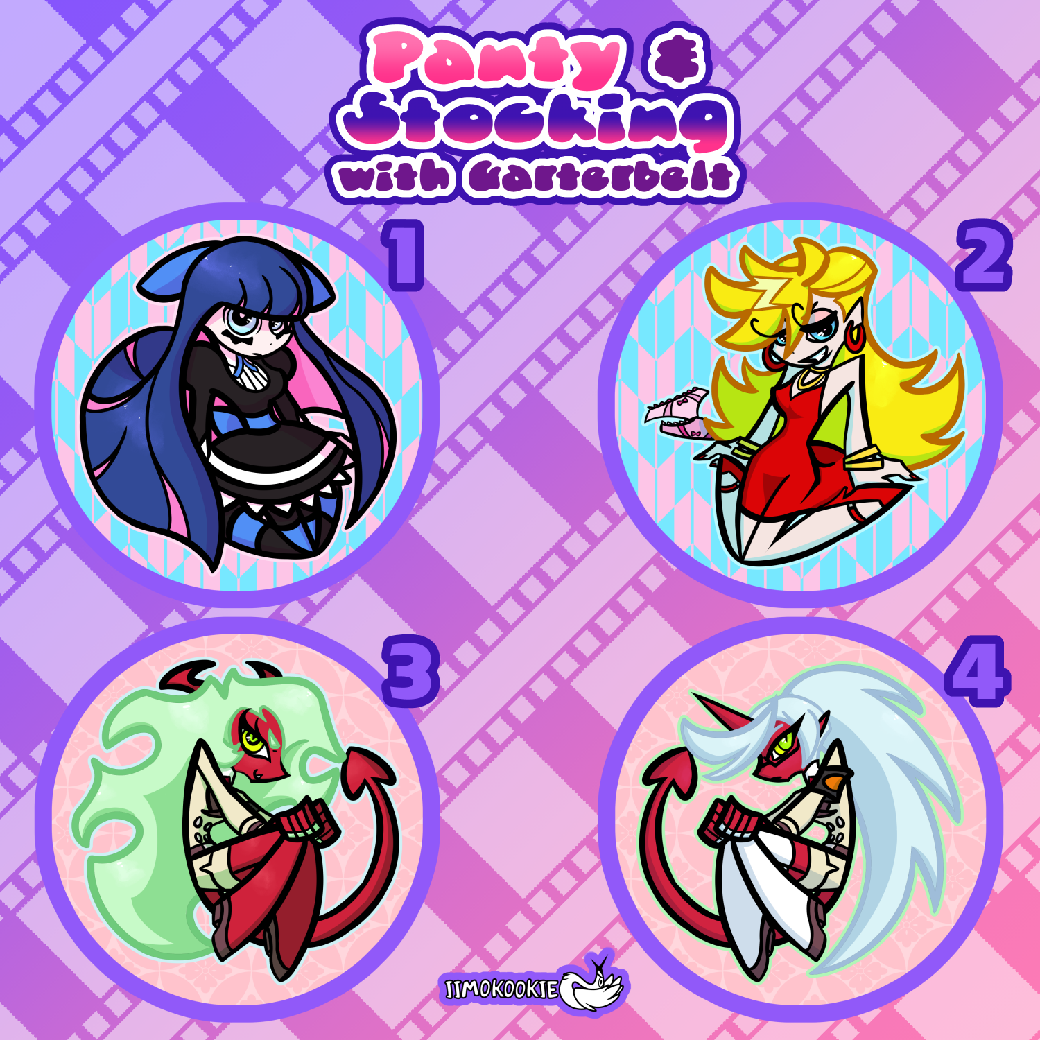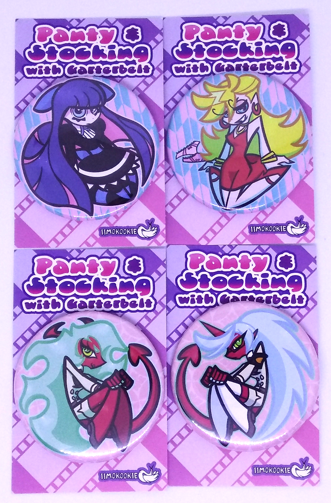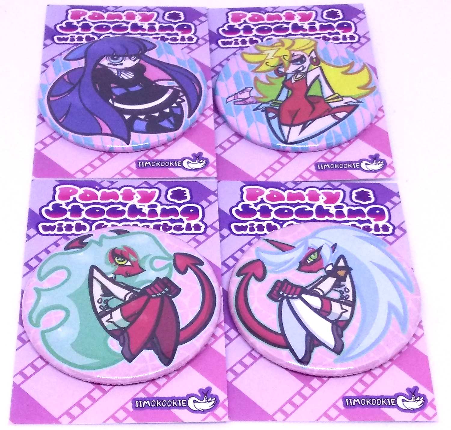 56 mm metal badges of Panty & Stocking with Garterbelt characters which I adore~
