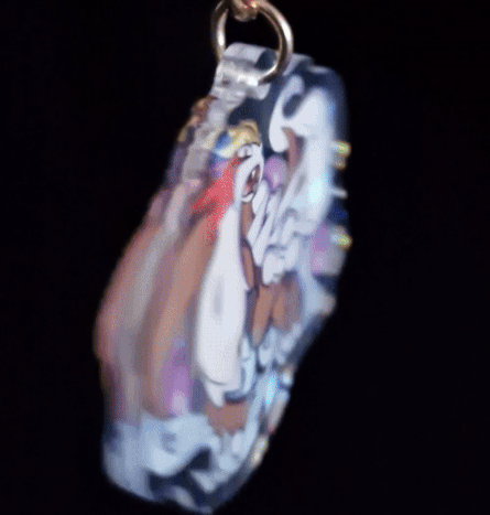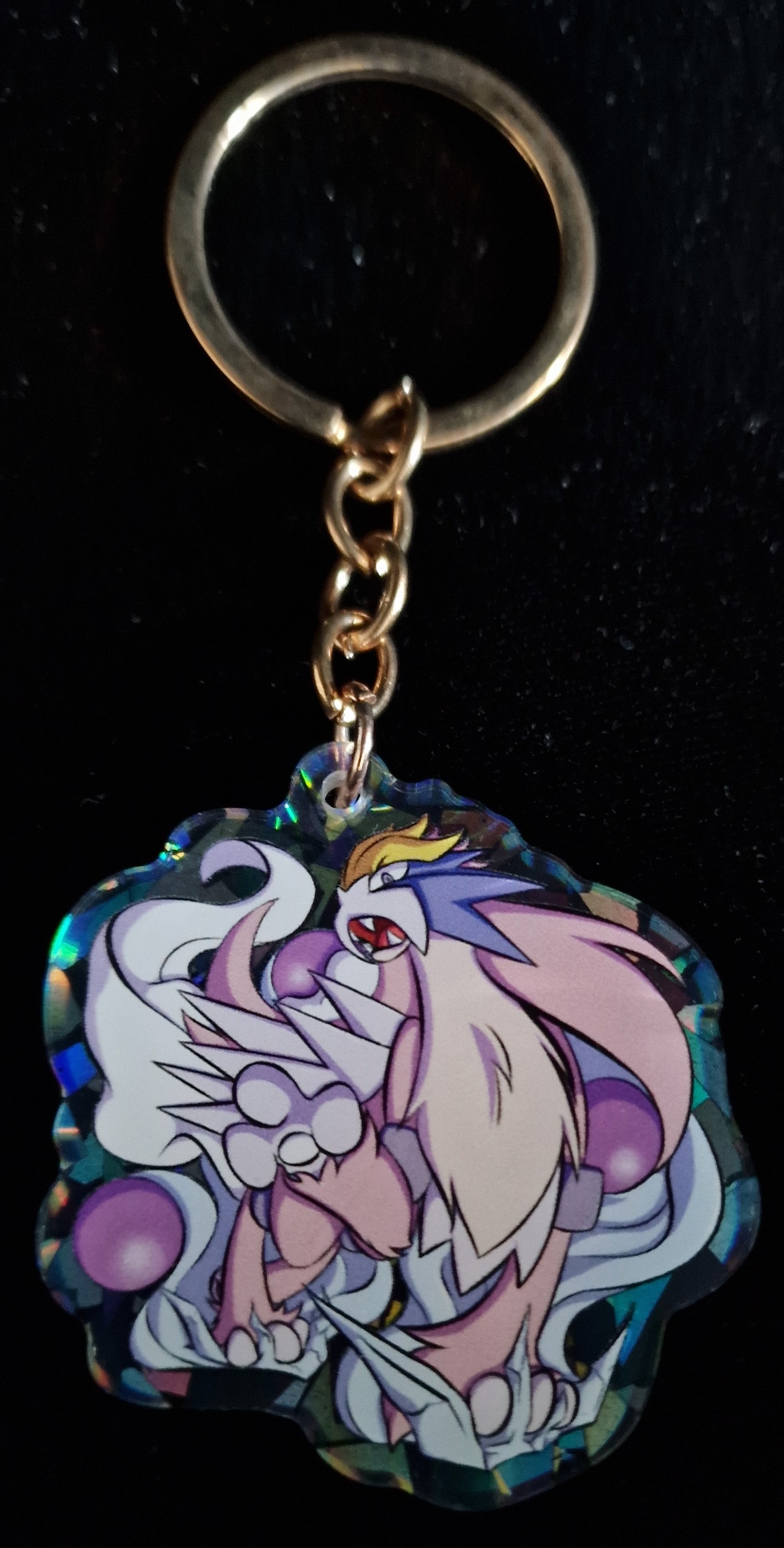 They have both the regular coloring and shiny coloring on each side of the keychain that you get & the shatter glass are mostly on the shiny version's side but I can't promise which side it's on~